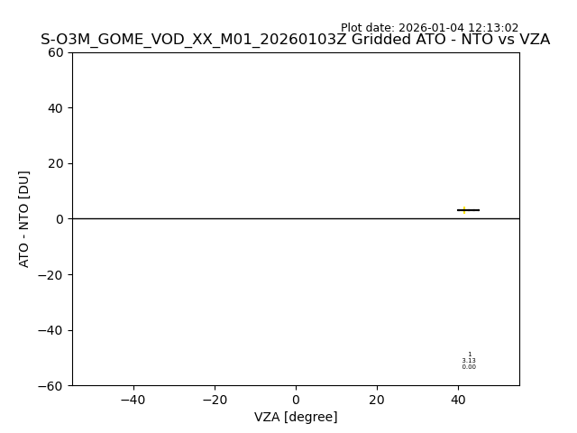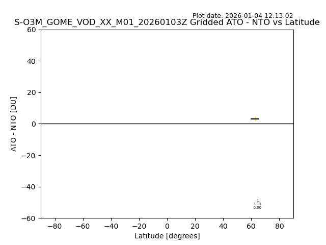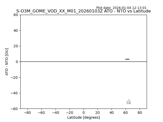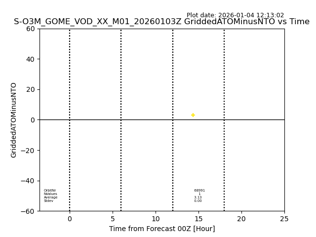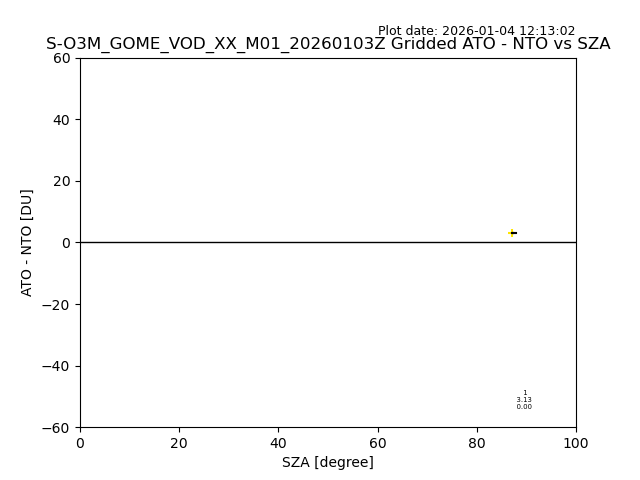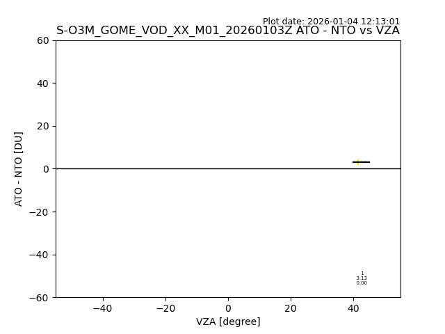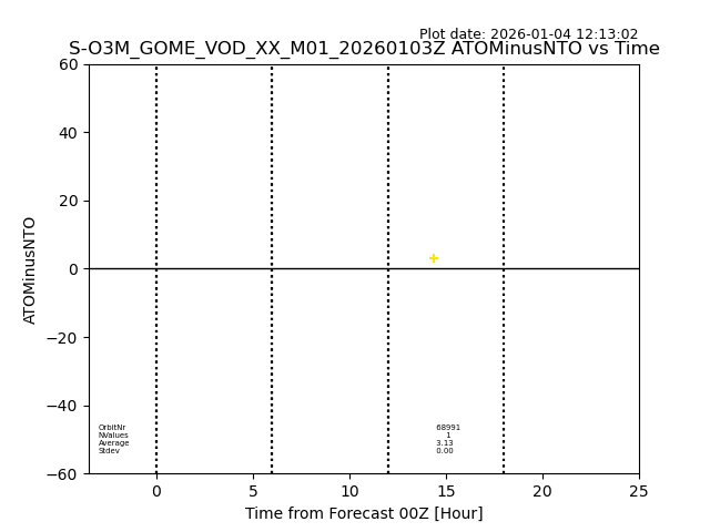The date given in the title of the plot indicates the T=0 day for which the NTO/O3 data is compared. Example: S-O3M_GOME_VOD__M02_20110117Z indicates that the plot is for data from 2011-01-17 00:00 up NTO/O3 files starting at 2011-01-17 23:59 is used.