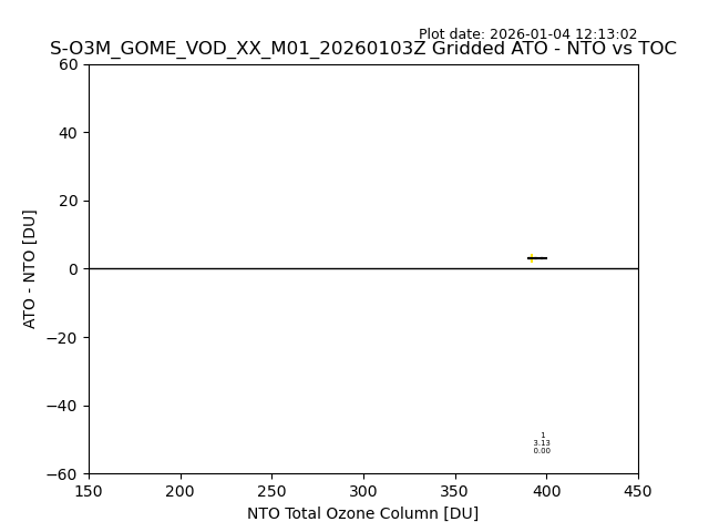 Using these forecast fields, the actual measured NTO/O3 from T=0 to T+24h can be compared. The comparison can be between each individual NTO/O3 retrieval and the ATO value in the associated grid box, or between 'pre-gridded' NTO/O3 values and the ATO value. Both these comparisons are given.