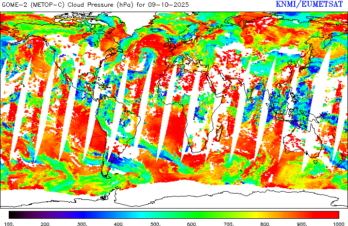 FRESCO cloud fraction of 09 October 2025 FRESCO cloud pressure of 09 October 2025